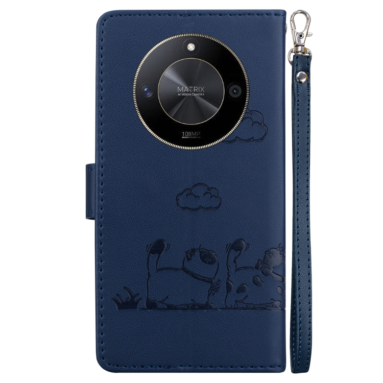Funda de Cuero Rfid para Honor X9B y Magic6 Lite con Diseño de Gatos (Azul)