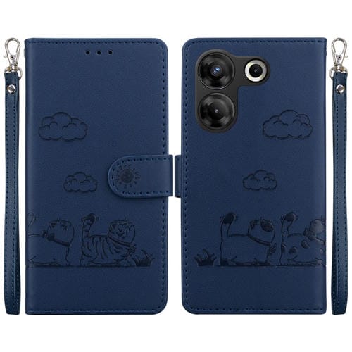 Funda de Cuero Rfid para Tecno Camon 20 Pro 5G con Diseño de Gatos (Azul)