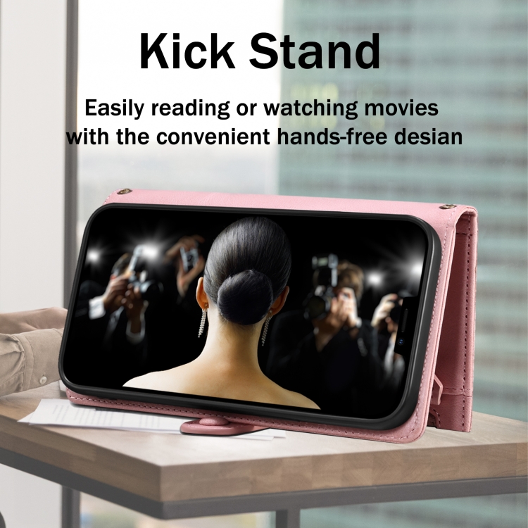 4. Con ranuras para tarjetas, billetera y cordón, práctica y funcional.