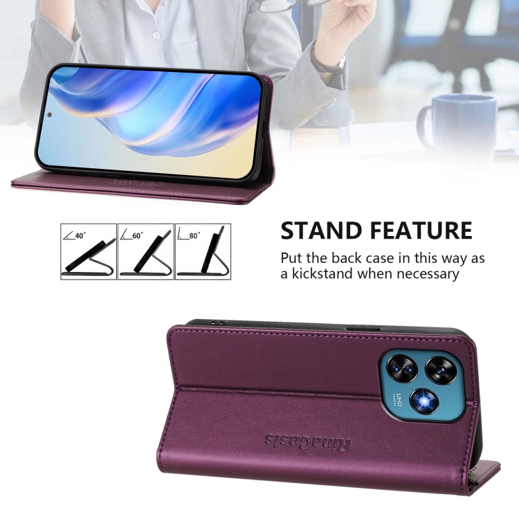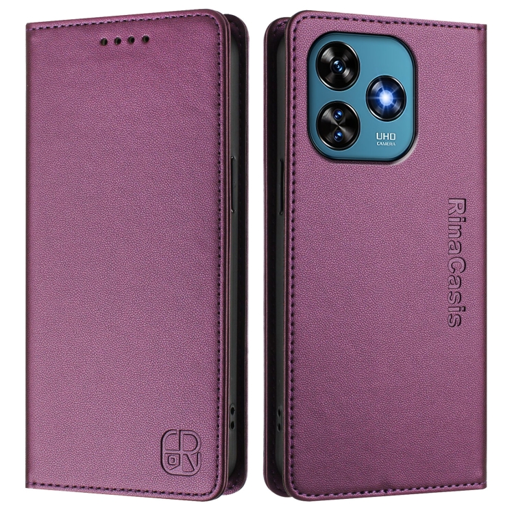 Funda de Cuero Rfid para Oukitel C51 Rc01 con Doble Pliegue y Succión Magnética (Violeta)