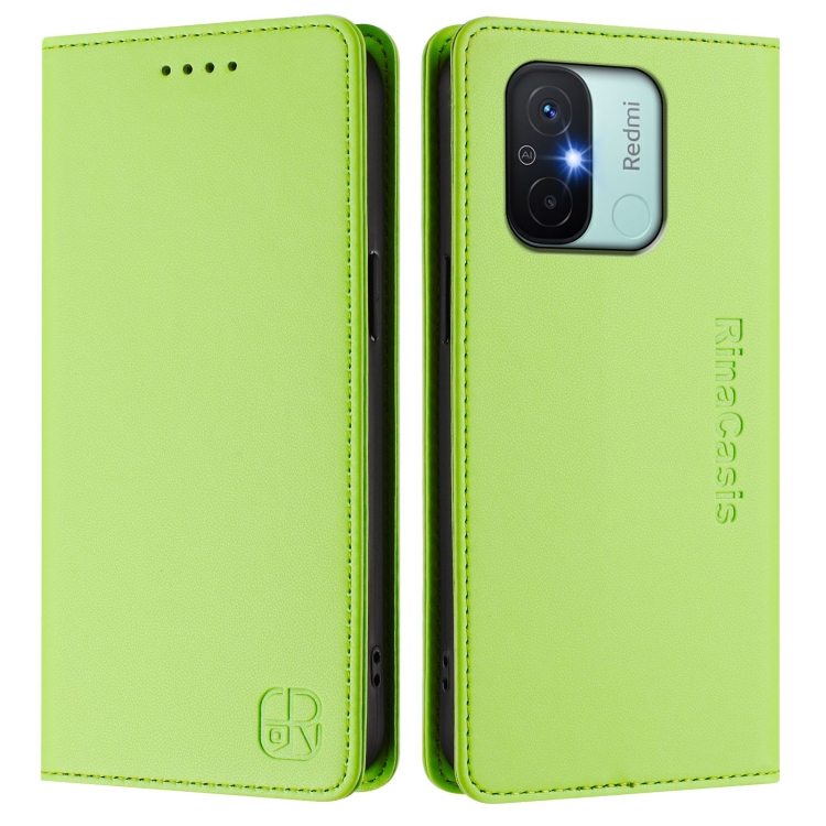 Funda de Cuero Rfid con Doble Pliegue y Succión Magnética para Redmi 12C/11A Rc01 (Verde Hierba)