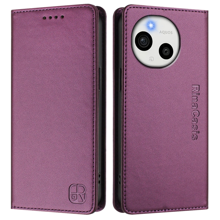 Funda de Cuero Rfid con Doble Pliegue y Succión Magnética para Sharp Aquos Sense9 Plus Rc01 (Violeta)