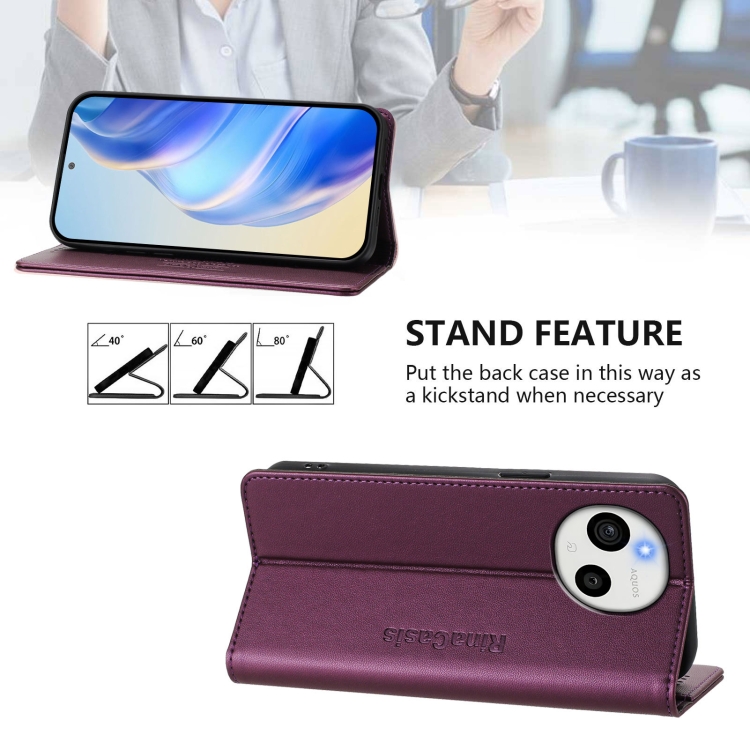 Funda de Cuero Rfid con Doble Pliegue y Succión Magnética para Sharp Aquos Sense9 Rc01 (Violeta)