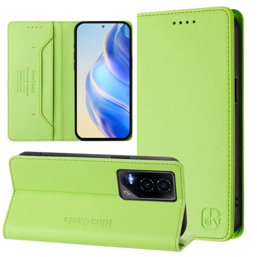 Funda de Cuero Rfid con Doble Pliegue y Succión Magnética para Honor Gt Rc01 (Verde Hierba)