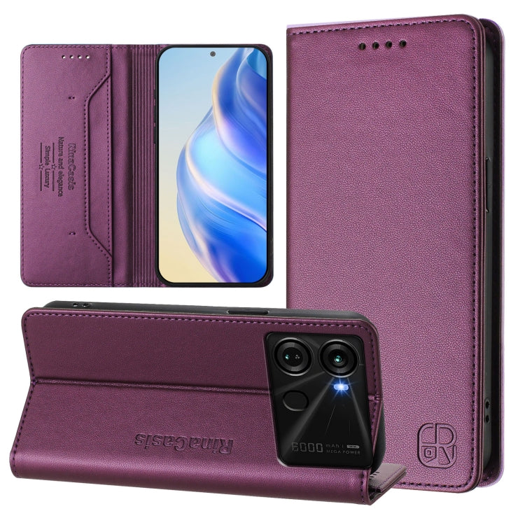 Funda de Cuero Rfid con Doble Pliegue y Succión Magnética para Itel P40 Rc01 (Violeta)
