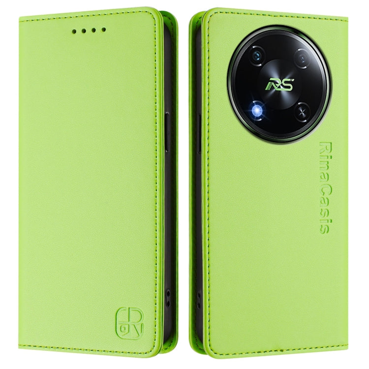 Funda de Cuero Rfid para Teléfono Itel Rs4/S666Ln Rc01 con Doble Pliegue y Succión Magnética (Verde Hierba)