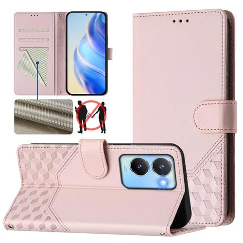Funda de Cuero Rfid con Relieve de Panal Global para Vivo Y56 5G / Y16 4G / Y02S 4G (Rosa)