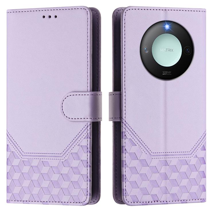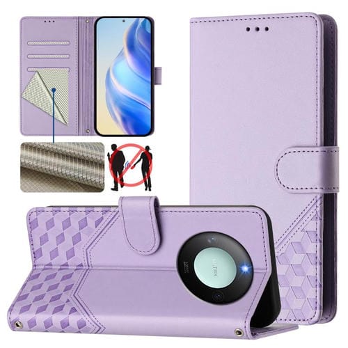 Funda de Cuero Rfid con Relieve de Panal para Honor X9C 5G (Morado Claro)