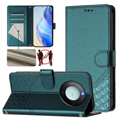 Funda de Cuero Rfid con Relieve de Panal para Honor X9C 5G (Verde Pavo Real)