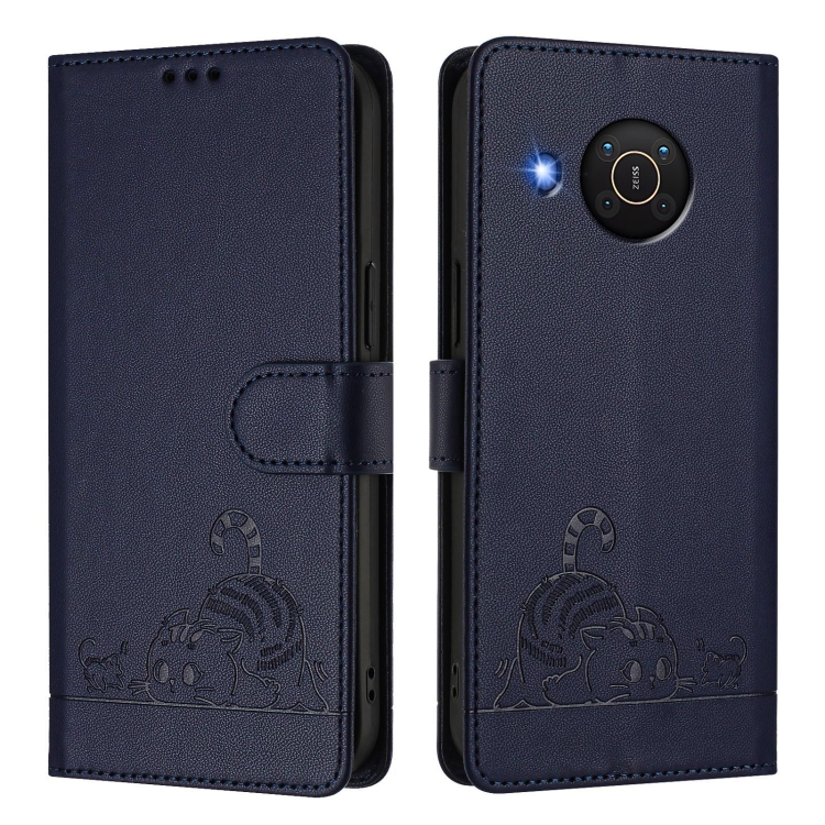 Funda de Cuero Rfid con Relieve de Rata y Gato para Nokia X20/X10 con Cordón (Azul)