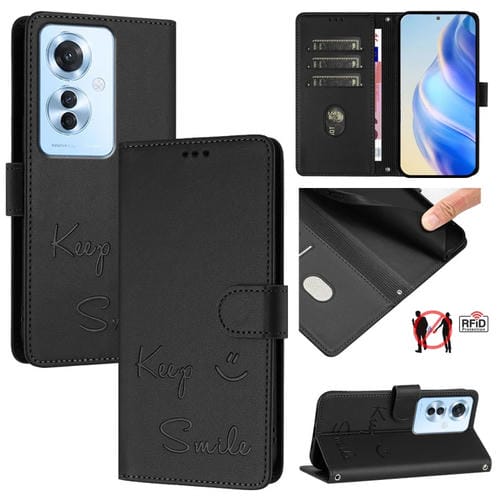 Funda de Cuero Rfid con Relieve de Sonrisa para Oppo F25 Pro 5G (Negra)