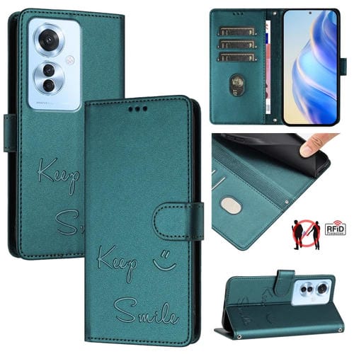 Funda de Cuero Rfid con Relieve de Sonrisa para Oppo F25 Pro 5G (Verde Pavo Real)