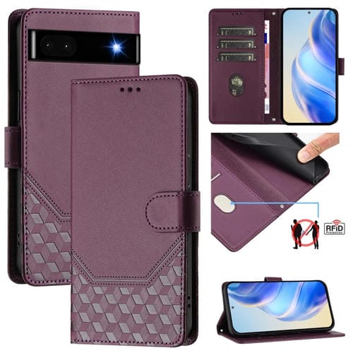 Funda de Cuero Rfid con Relieve en Panal para Google Pixel 6A (Violeta)