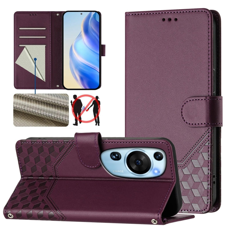 Funda de Cuero Rfid con Relieve en Panal para Huawei P60 (Violeta)