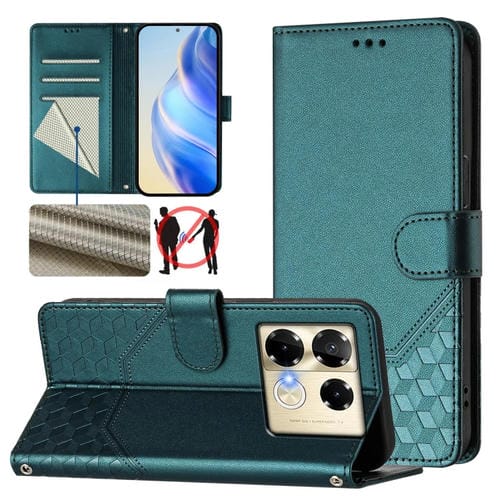 Funda de Cuero RFID con Relieve en Panal para Infinix Note 40 Pro 5G/4G (Verde Pavo Real)