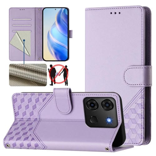 Funda de Cuero RFID con Relieve en Panal para Infinix Smart 7 Plus/7 HD/7 India (Morado Claro)