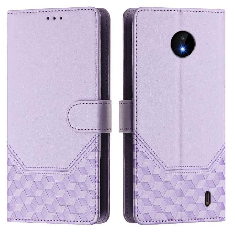 Funda de Cuero Rfid con Relieve en Panal para Nokia C10/C20 (Morado Claro)