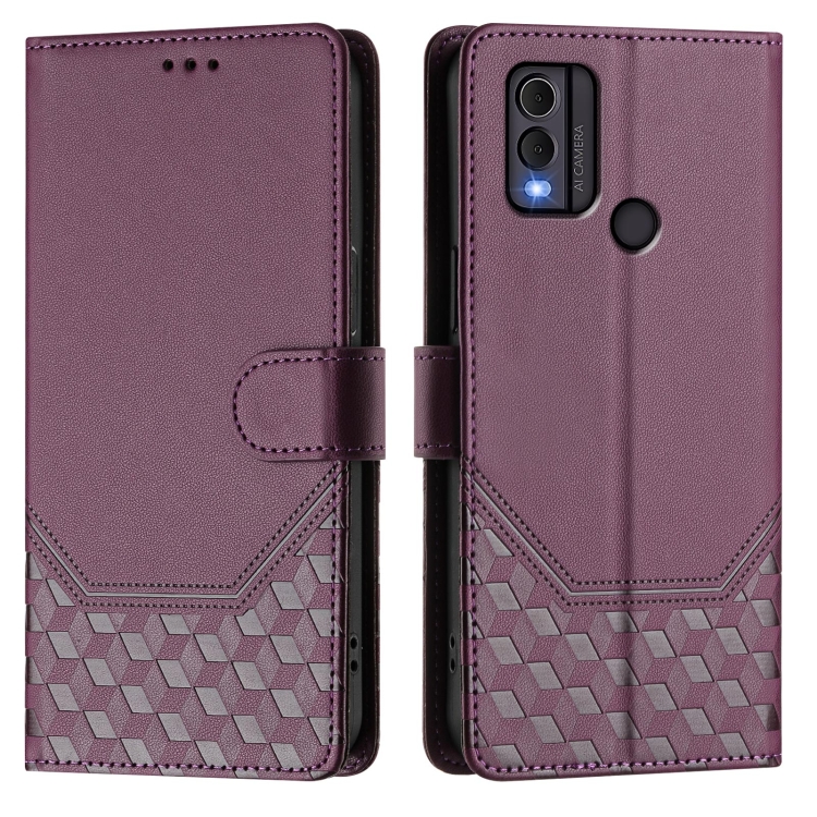 Funda de Cuero Rfid con Relieve en Panal para Nokia C22 (Violeta)