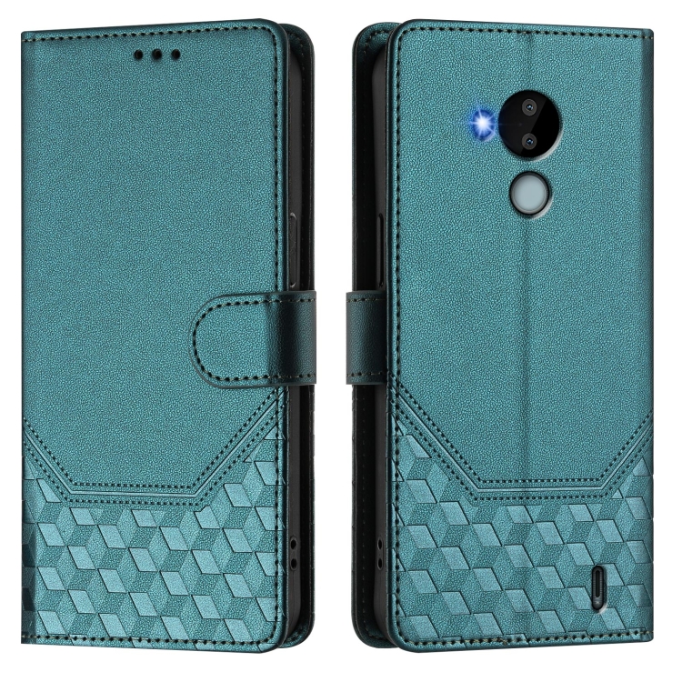 Funda de Cuero Rfid con Relieve en Panal para Nokia C30 (Verde Pavo Real)