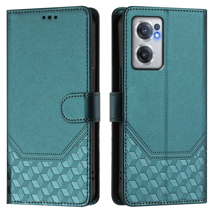 Funda de Cuero Rfid con Relieve en Panal para OnePlus Nord Ce 2 5G (Verde Pavo Real)