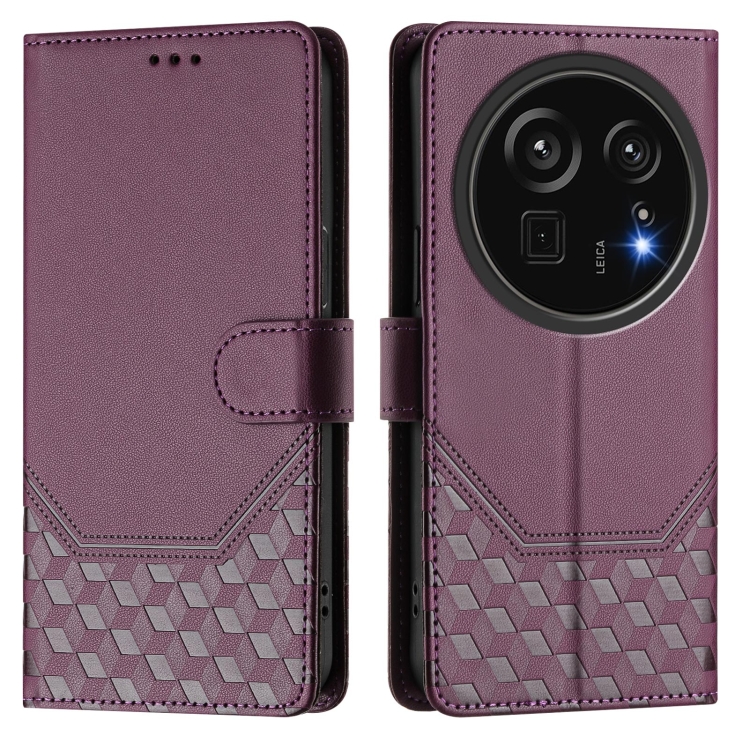 Funda de Cuero Rfid con Relieve en Panal para Sharp Aquos R9 Pro (Violeta)