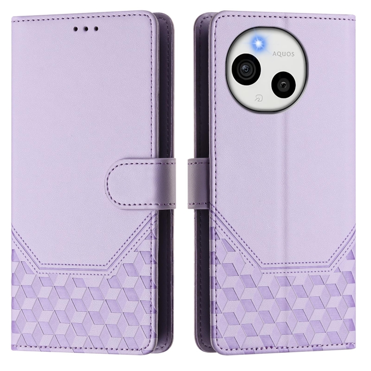 Funda de Cuero Rfid con Relieve en Panal para Sharp Aquos Sense9 Plus (Morado Claro)