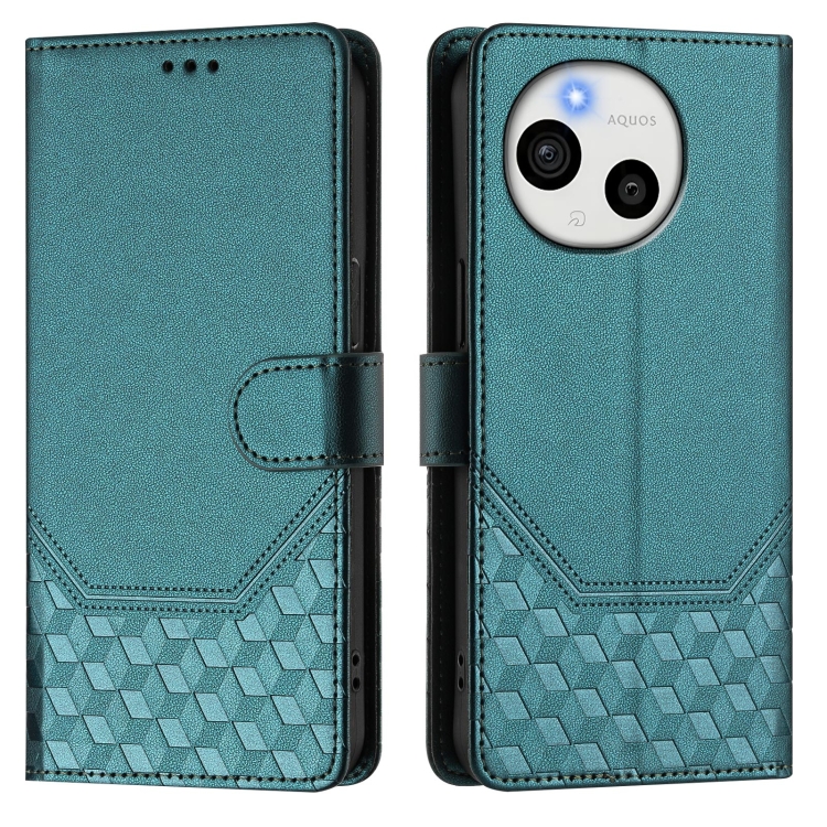 Funda de Cuero Rfid con Relieve en Panal para Sharp Aquos Sense9 Plus (Verde Pavo Real)