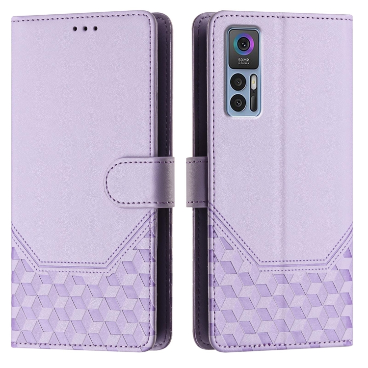 Funda de Cuero Rfid con Relieve en Panal para TCL 30 5G/4G/30+ (Morado Claro)