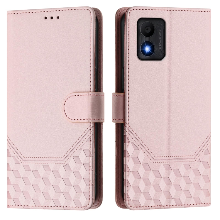 Funda de Cuero Rfid con Relieve en Panal para TCL 303 (Rosa)