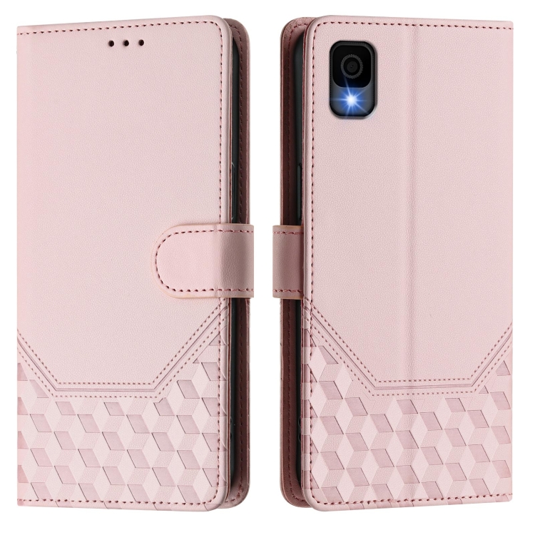 Funda de Cuero Rfid con Relieve en Panal para TCL 30Z (Rosa)
