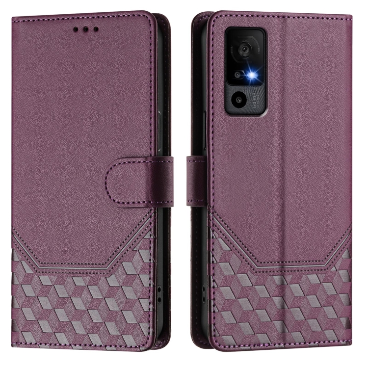 Funda de Cuero Rfid con Relieve en Panal para TCL 40R (Violeta)