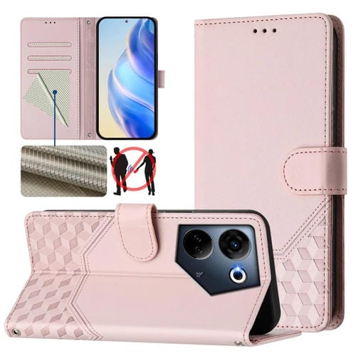Funda de Cuero Rfid con Relieve en Panal para Tecno Camon 20 y Camon 20 Pro 4G (Rosa)