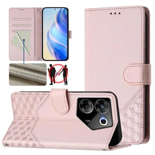Funda de Cuero Rfid con Relieve en Panal para Tecno Camon 20 Pro 5G (Rosa)