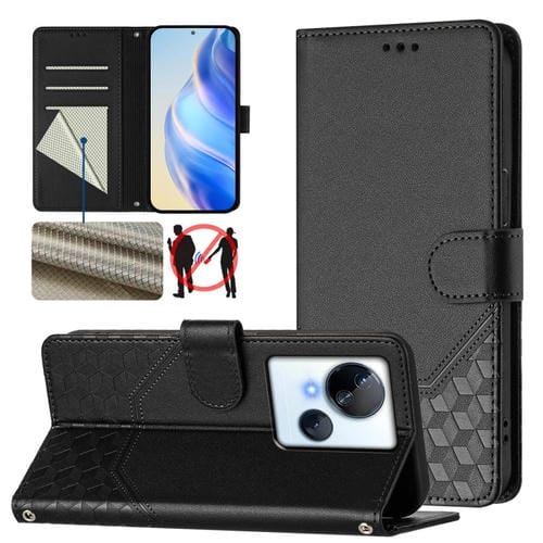Funda de Cuero Rfid con Relieve en Panal para Tecno Spark 10 5G (Negra)