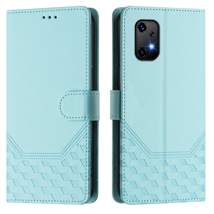 Funda de Cuero Rfid con Relieve en Panal para Umidigi Bison X20 (Verde Menta)