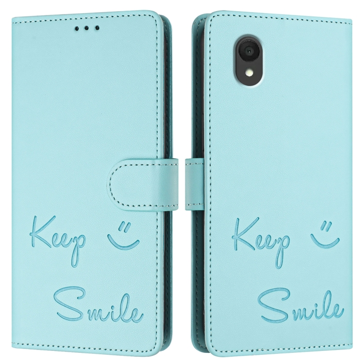 Funda de Cuero Rfid con Relieve Smile para Teléfono TCL 201 (Verde Menta)