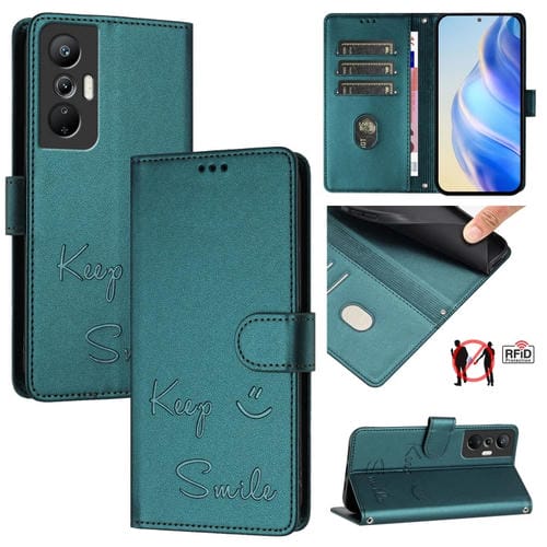 Funda de Cuero Rfid con Relieve Sonriente para Infinix Hot 20S y Hot 20 Pro (Verde Pavo Real)