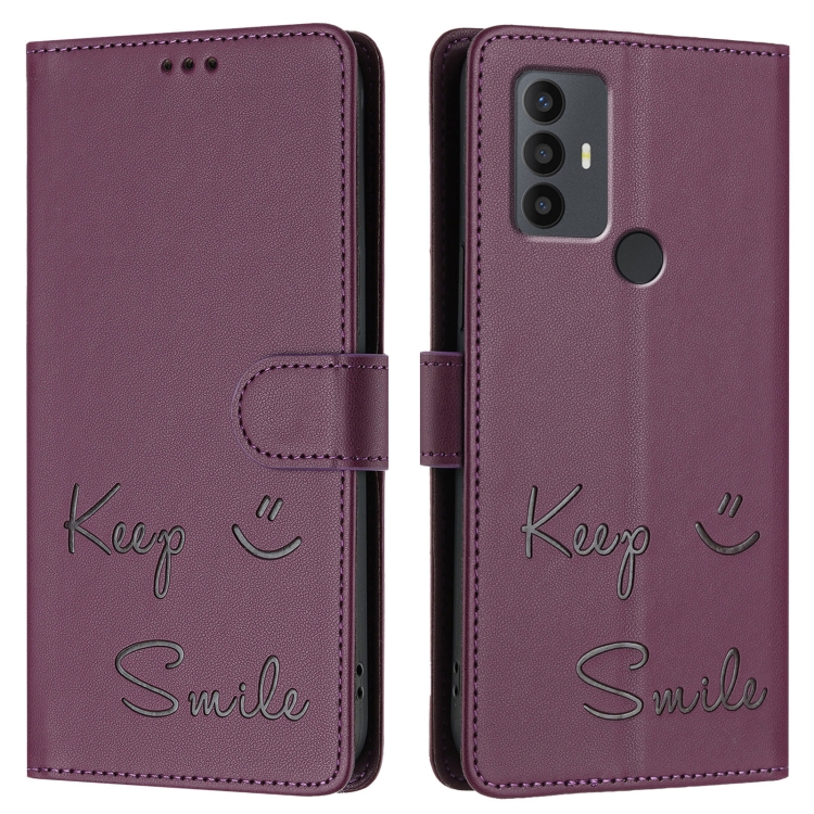 Funda de Cuero Rfid con Relieve Sonriente para TCL 30 Se (Violeta)