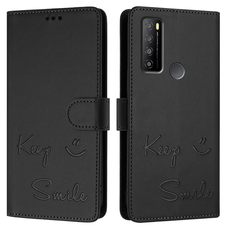 Funda de Cuero Rfid con Relieve Sonriente para TCL 30 Xl T701Dl (Negra)