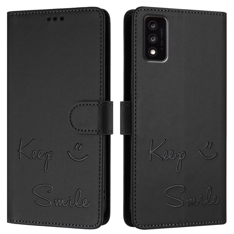 Funda de Cuero Rfid con Relieve Sonriente para TCL 30T T603Dl (Negra)