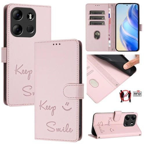 Funda de Cuero Rfid para Tecno Pop 7 y Pop 7 Pro con Relieve Sonriente (Rosa)