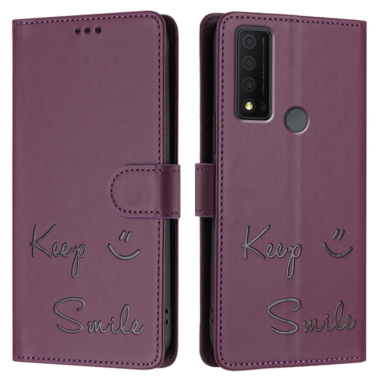 Funda de Cuero Rfid para Teléfono TCL 30 Xe 5G con Relieve Sonriente (Violeta)