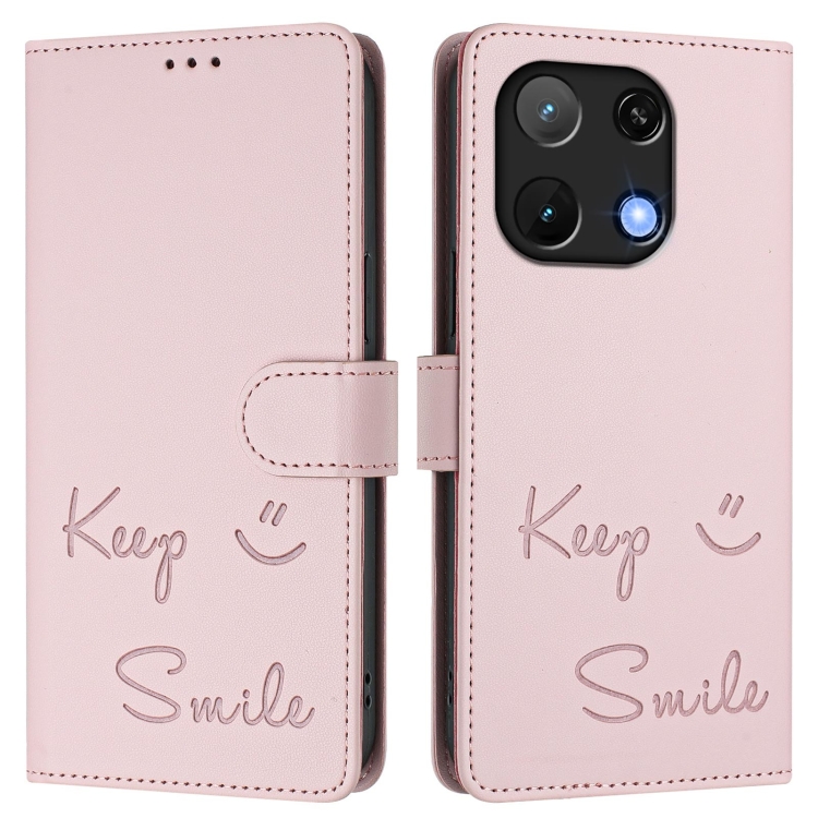 Funda de Cuero Rfid con Relieve Sonriente para Umidigi Note 90 (Rosa)