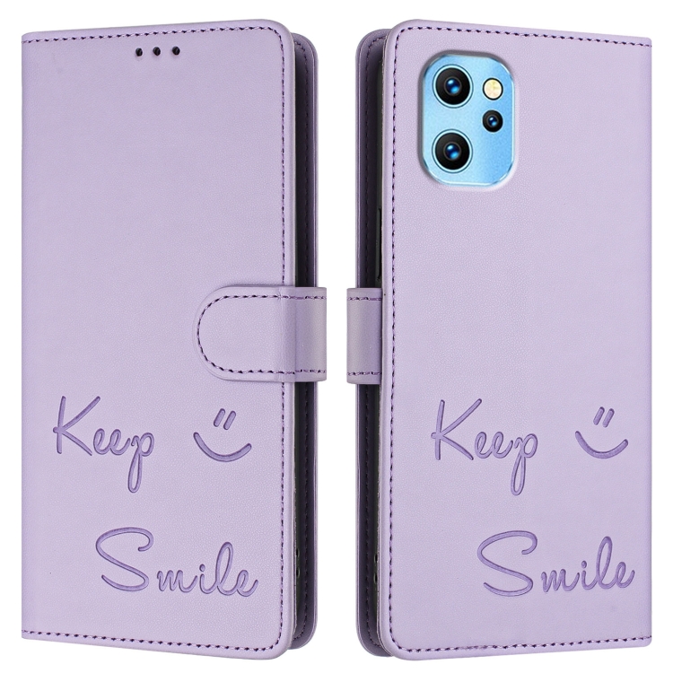 Funda de Cuero Rfid para Teléfono Umidigi Power 7 Max con Relieve Sonriente (Morado Claro)