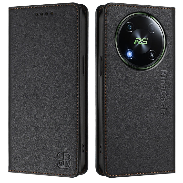 Funda de Cuero Rfid con Succión Magnética y Doble Pliegue para Teléfono Itel Rs4/S666Ln Rc01 (Negra)