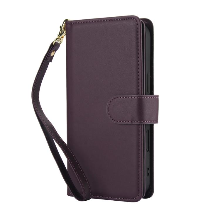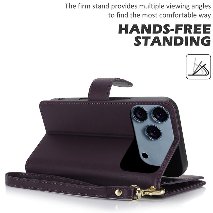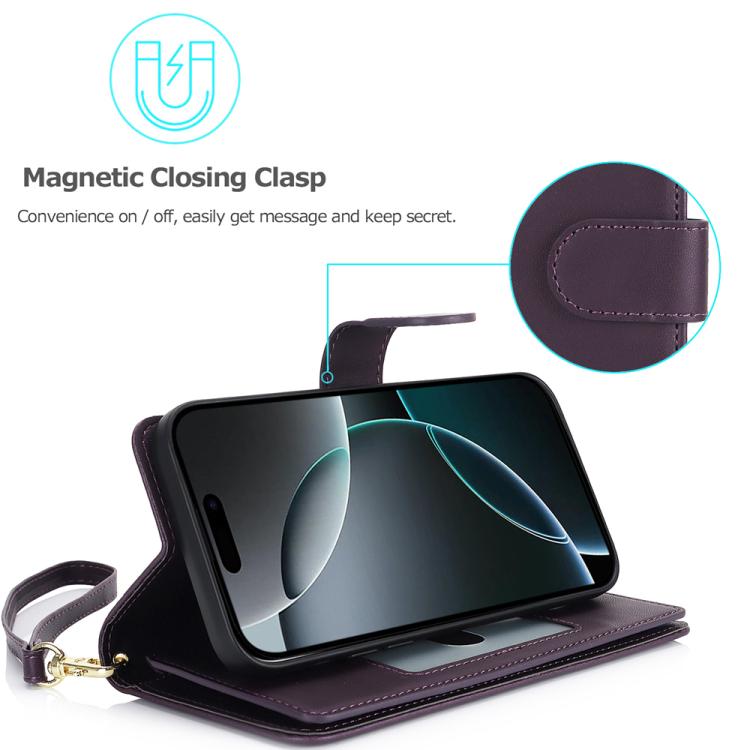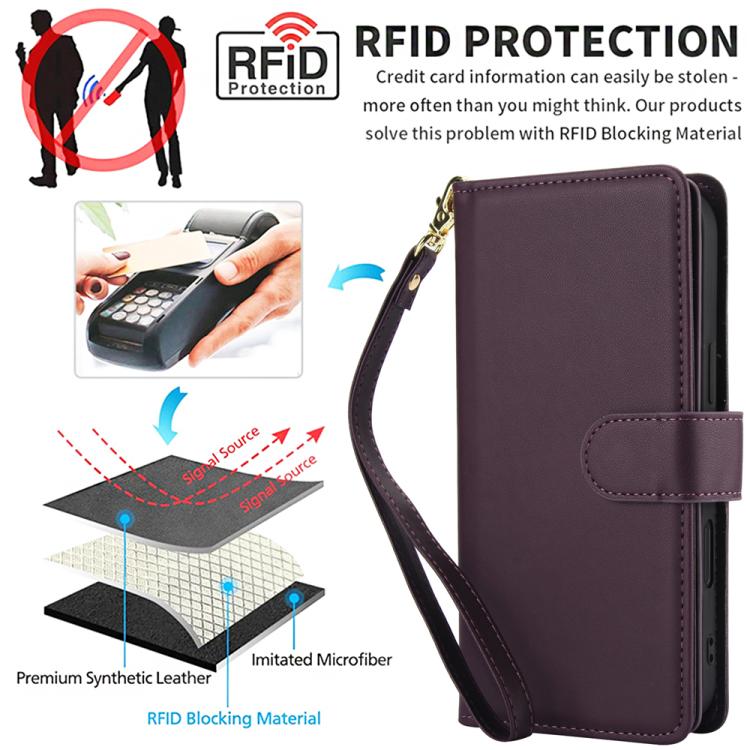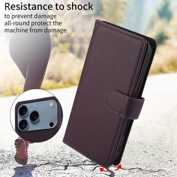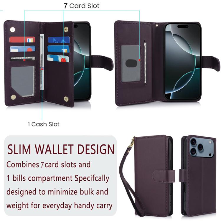 Funda de cuero RFID para iPhone 17 Pro Max con múltiples tarjetas (morado oscuro)