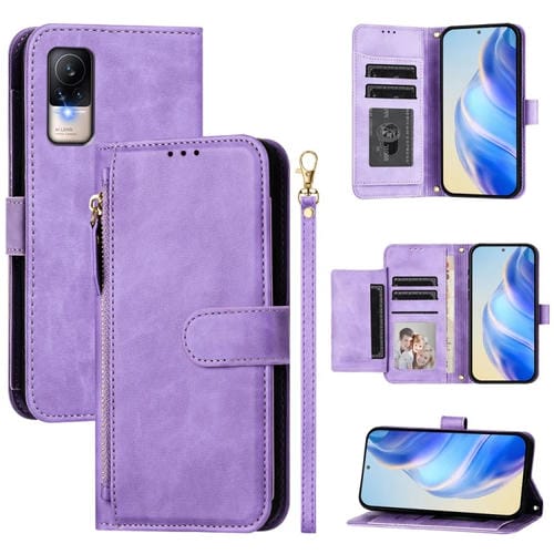 Funda de Cuero Tipo Billetera con Cremallera y Ranuras para Varias Tarjetas para Xiaomi Civi 1S (Morado)