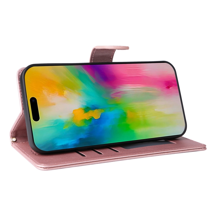 Funda Tipo Cartera Cuero Entramado Diamantes iPhone 16 Pro Max (Oro Rosa)