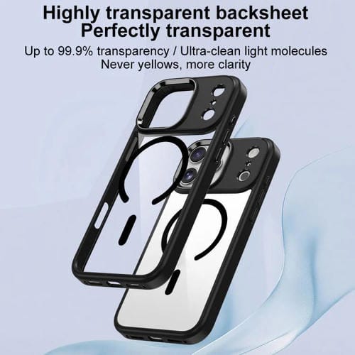 Funda de PC transparente MagSafe antihuellas para iPhone 17 (negra)