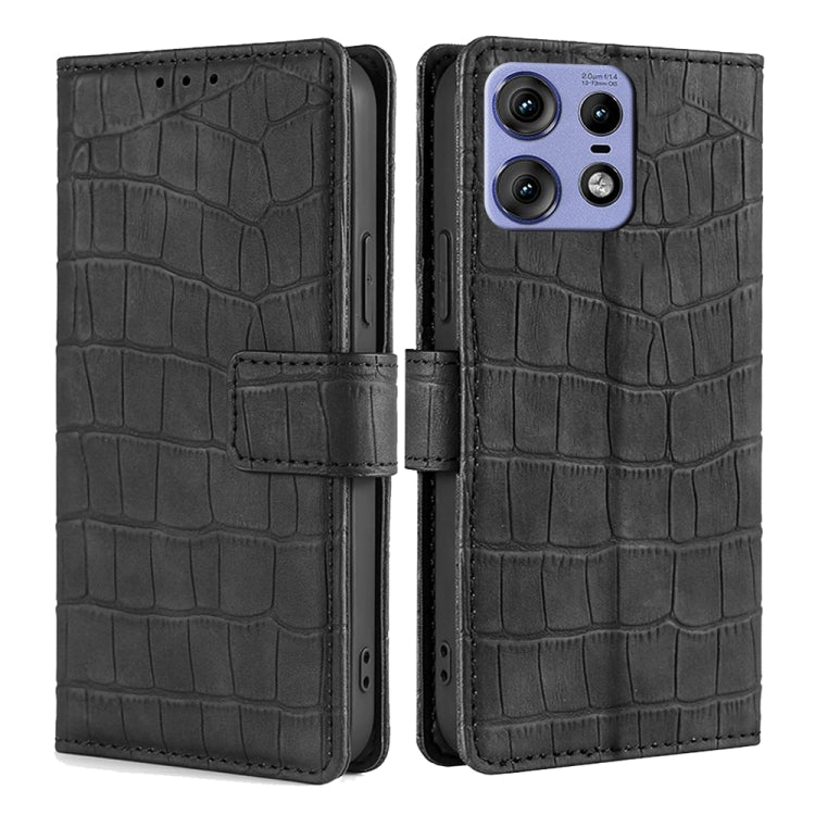 Funda de Piel para Motorola Edge 50 Pro 5G con Cierre Magnético y Diseño Cocodrilo (Negra)
